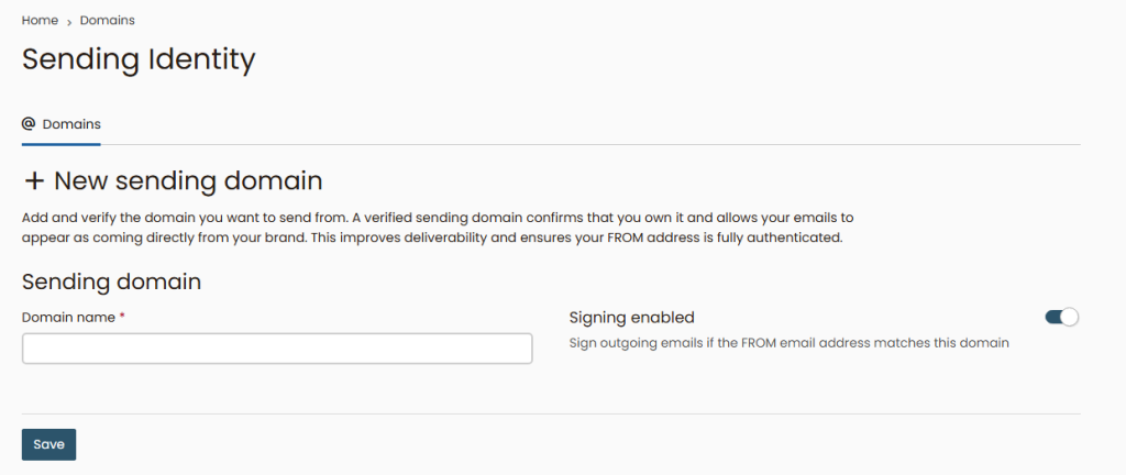 A tracking domain replaces generic tracking URLs with your own branded subdomain (e.g. tracking.yourdomain.com).